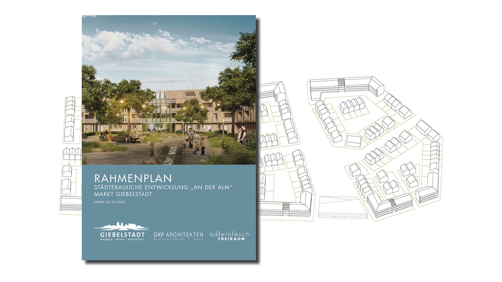 Gemeinsam mit den Landschaftsarchitekten adlerolesch aus Nürnberg beteiligten wir uns am zweiphasigen städtebaulichen Wettbewerb „An der Alm“ der Gemeinde Markt Giebelstadt und wurden im April 2024 mit dem 1. Preis ausgezeichnet.